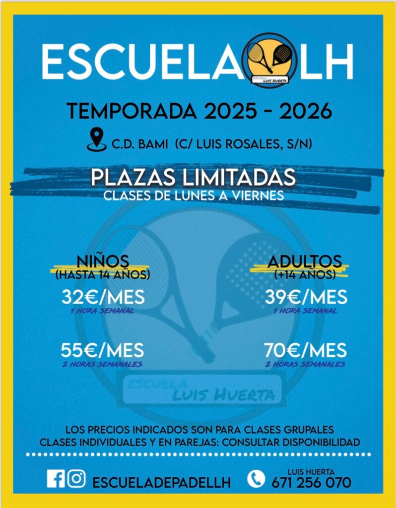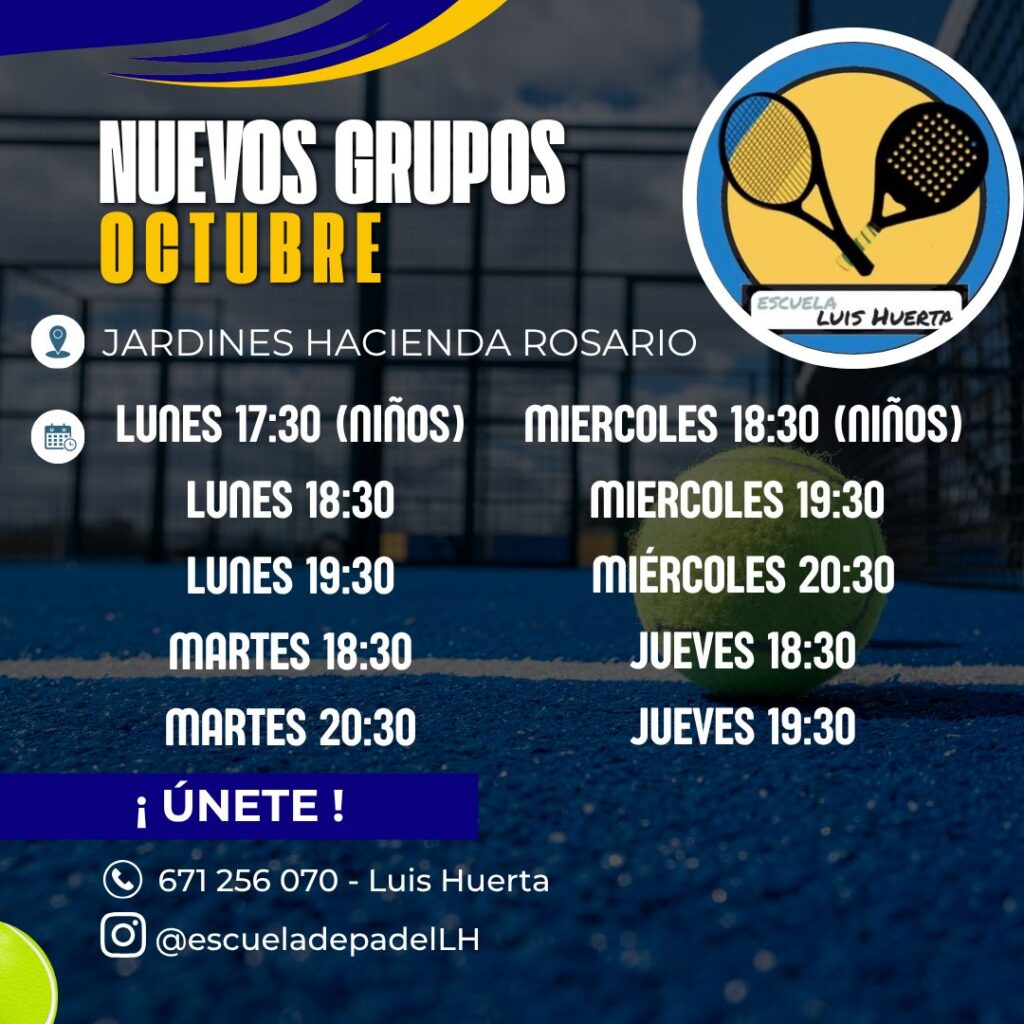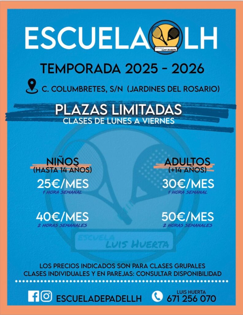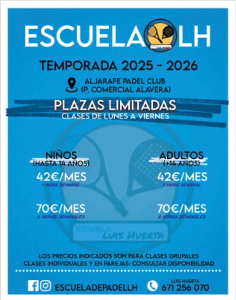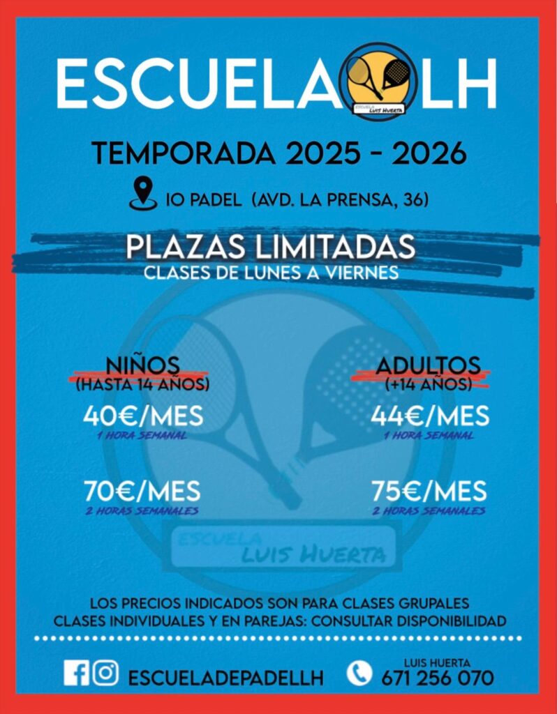 En la Escuela de Pádel Luis Huerta ofrecemos clases con profesionales titulados en un ambiente cercano y motivador, en sedes modernas y con grupos reducidos.